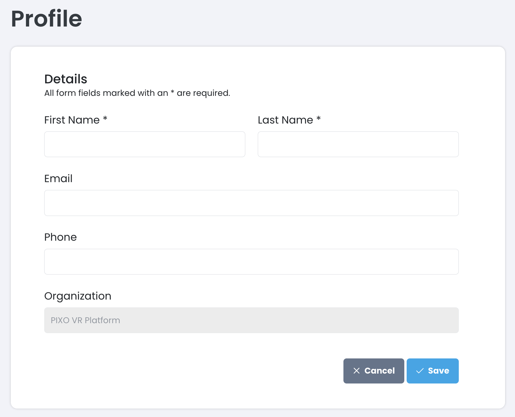 Use the Profile page to edit the name, email and phone number attached to your PIXO account.