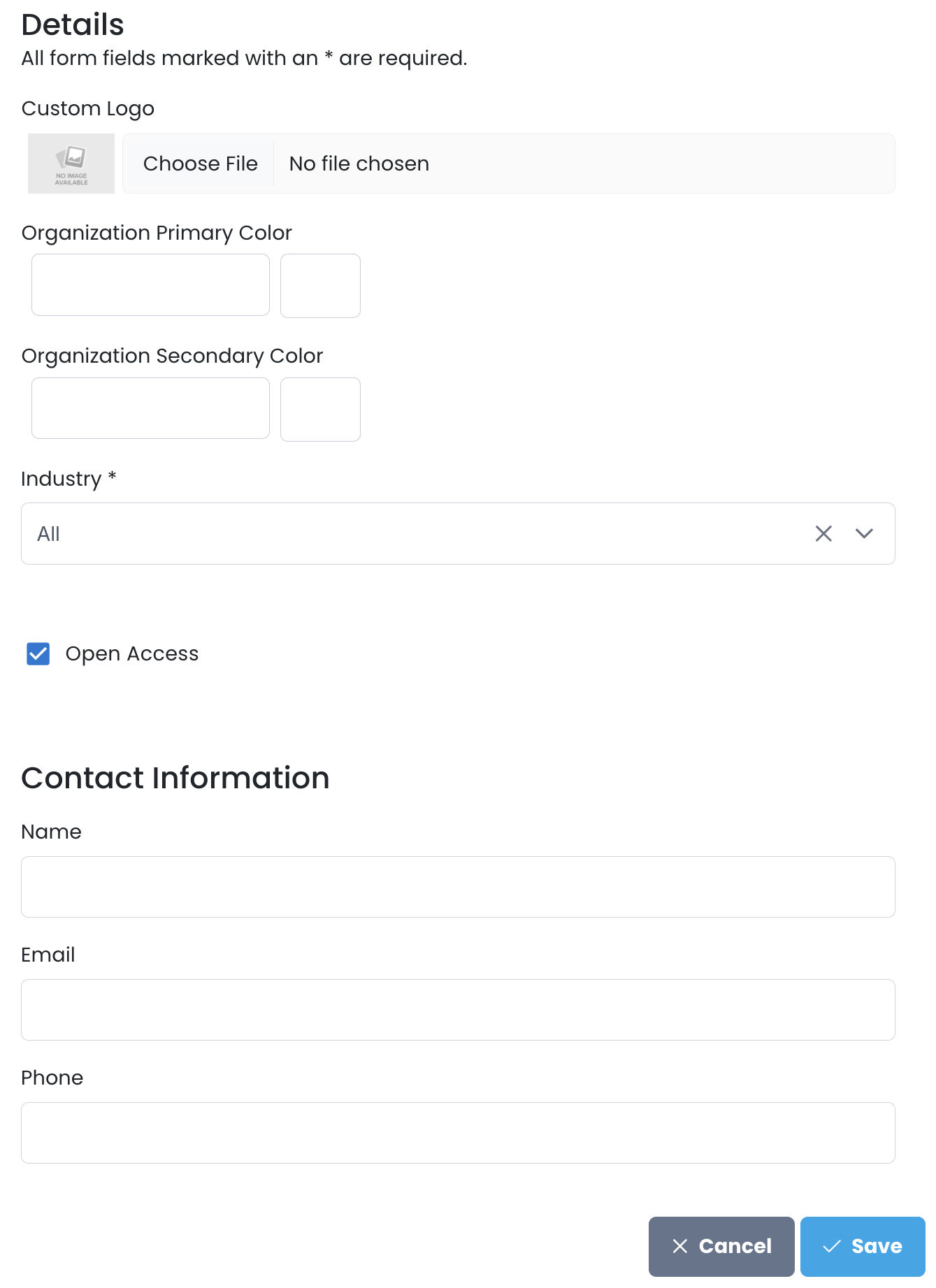 1. From here, you can edit your organization's logo, brand colors, industry and contact information.