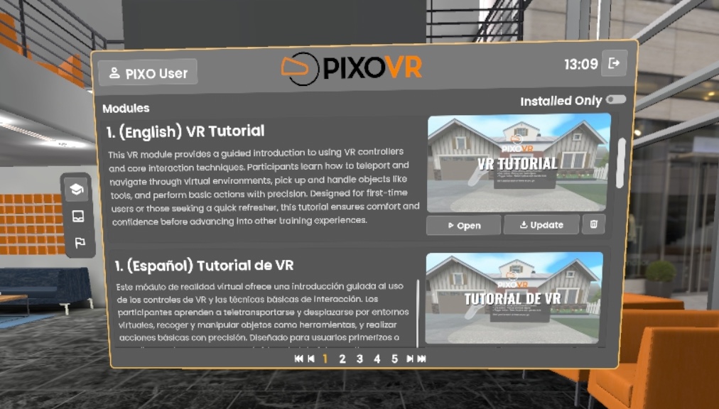 To install the PIXO VR Hub App, log in to the PIXO Platform and navigate to the Modules tab.